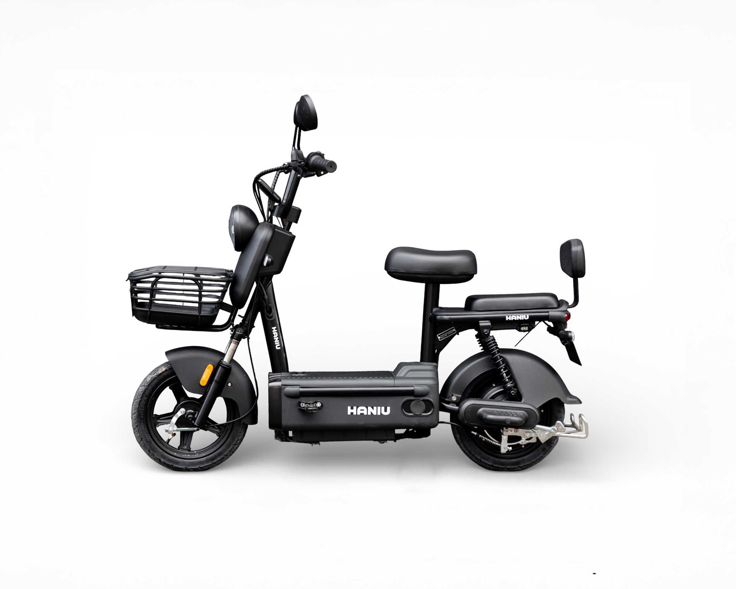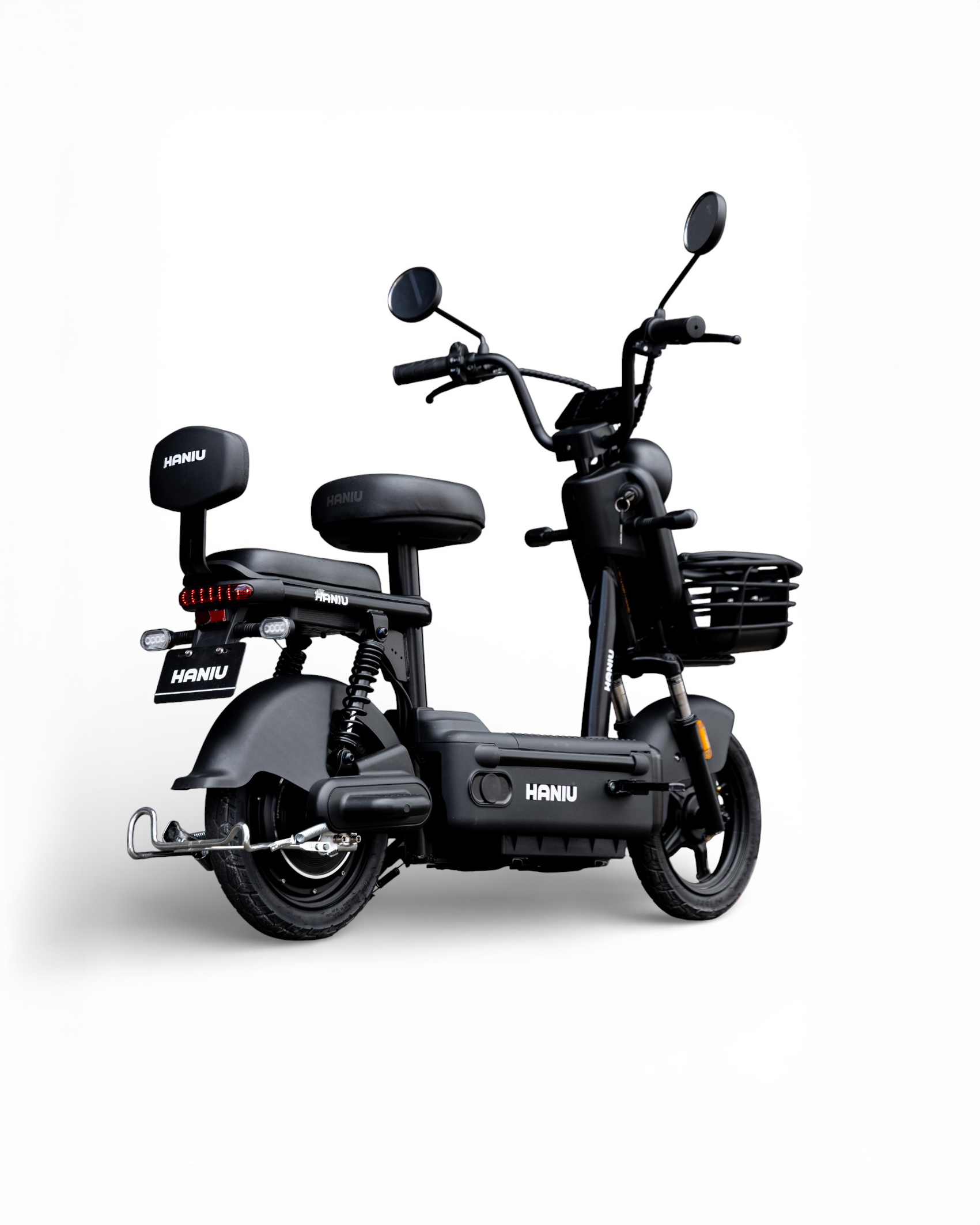 La Haniu 500w es una bicimoto eléctrica urbana diseñada para ofrecer movilidad práctica, cómoda y eficiente en tus desplazamientos diarios. Equipada con un motor de 500 W y una batería de 48 V / 12 Ah, brinda una autonomía de 20–35 km y una velocidad máxima de 35 km/h, ideal para trayectos urbanos y de cercanía. Su doble suspensión trasera, freno de banda, luces LED y direccionales adelante y atrás la hacen segura y confiable en la ciudad. Con extras como maletín de batería extraíble, espejos y pito, es una opción funcional con garantía incluida para quienes buscan una alternativa de transporte eléctrica práctica y moderna