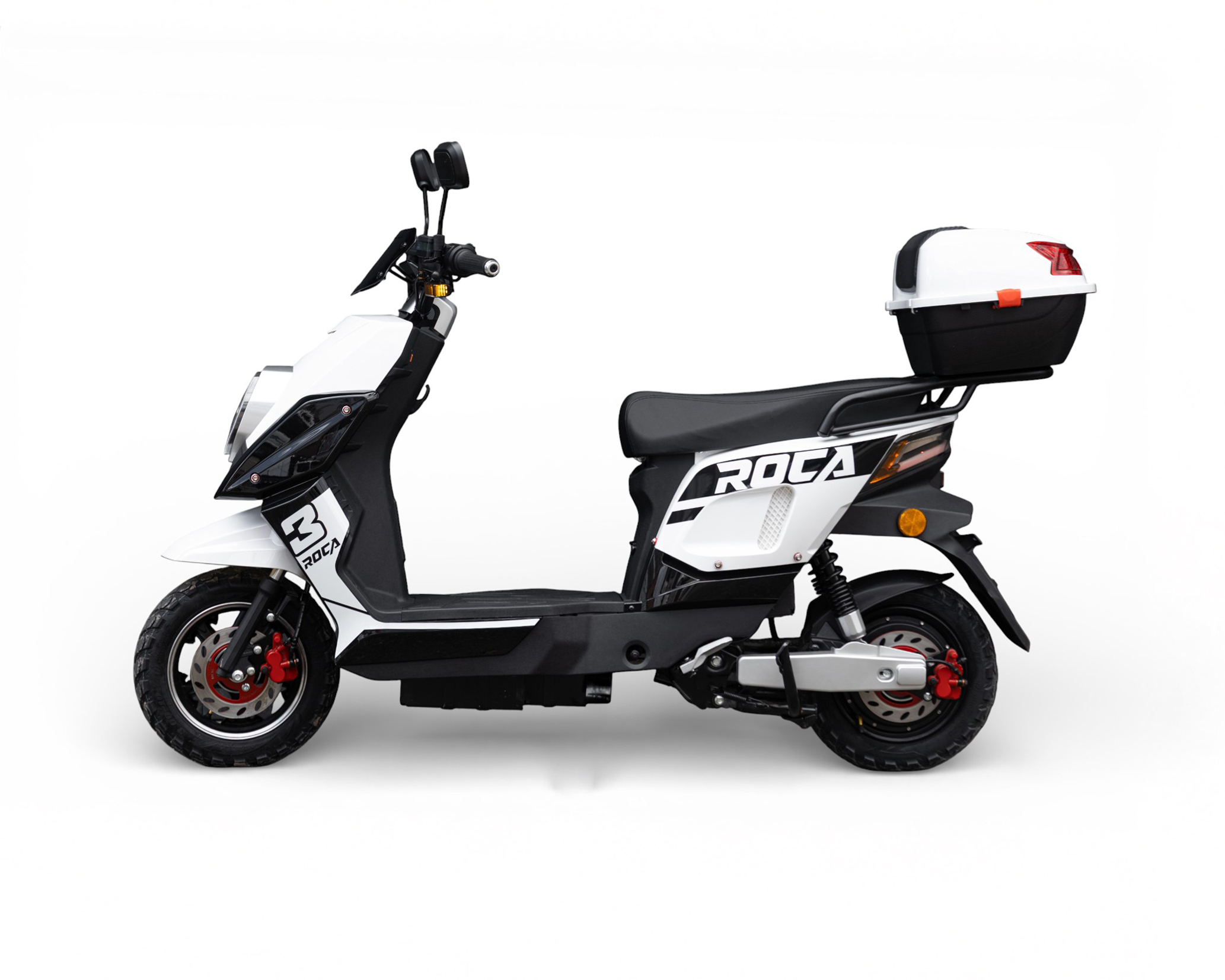 La Roca es una bicimoto eléctrica de alto desempeño, pensada para quienes buscan potencia, velocidad y tecnología en la ciudad. Con una batería 72V / 20Ah, alcanza hasta 50 km/h y ofrece una autonomía cercana a 50 km. Sus frenos de disco delantero y trasero, junto a las luces LED y RGB, Bluetooth y tres modos de manejo, garantizan una conducción segura, moderna y totalmente conectada